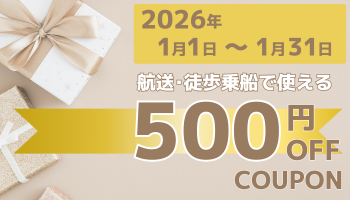 2026年1月に使えるクーポン(対象:乗用車航送プラン・徒歩乗船・グリーン席のみプラン)