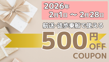 2026年2月に使えるクーポン(対象:乗用車航送プラン・徒歩乗船・グリーン席のみプラン)